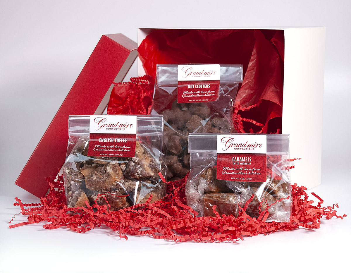 Our Introductory Box is the best way to get to know each of our sweet treats. We pack this box with one 6 ounce package of each of our three unique confections.